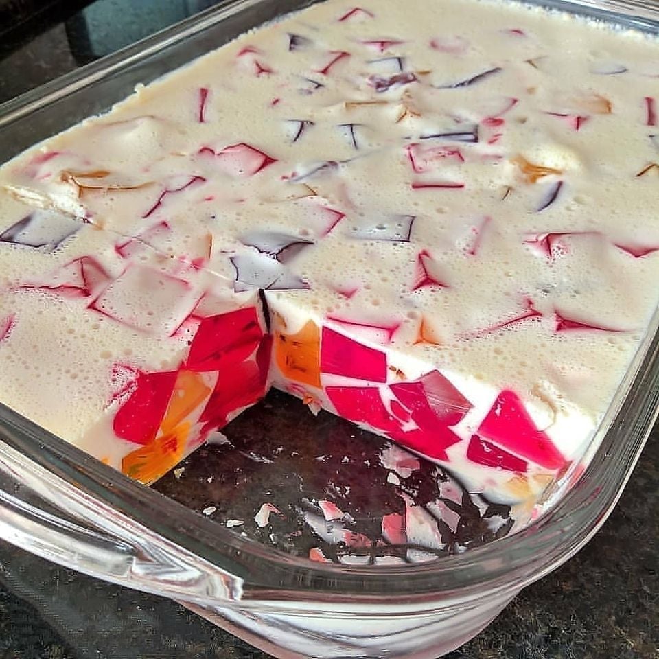 Para gelatina: Prepare as gelatinas conforme instruções de embalagem. Coloque-as em um recipiente quadrado com tampa e deixe na geladeira de um dia para o outro. Para a creme: Coloque no liquidificador o condensado, o creme de leite, o leite de coco leite e bata por 1 minuto. Agora, hidrate uma gelatina incolor conforme instruções do fabricante e fornece na mistura do liquidificador e bata por mais 1 minuto. Para montagem da gelatina mosaico: Aposente-se como gelatinas da gelada e corte todos os sabores em quadrados, do tamanho que desejar. Transfira para um pool grande todos os sabores e em seguida despeje o creme do liquidificador. Delicadamente mexa com o auxílio de uma colher, só para misturar os sabores e as cores. Transfira para uma forma de sua preferência e leve para geladeira por no mínimo 7 horas. Se fizer de um dia para outro, melhor.