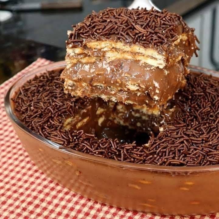 Em uma panela coloque o leite condensado, manteiga, chocolate em pó e misture bem. Ligue o fogo baixo e cozinhe misturando sempre por cerca de 10 minutos ou até ficar em ponto de brigadeiro de enrolar. Desligue o fogo e junte o creme de leite e leve para gelar. Umedeça as bolachas em café feio e comece intercalando camadas de bolacha + brigadeiro até acabar com uma camada de brigadeiro. Leve para geladeira por 2 horas ou freezer por 30 minutos. Quando for servir decore com chantilly e aproveite! Chocolate em pó: Não usei achocolato, pois fica muito doce, então invista ou no chocolate em pó ou no cacau, se for usar cacau 100% coloque apenas 3 colheres (sopa). Creme de Leite: Pode usar o de lata se quiser, mas ele vem mais que a caixinha ai seu creme vai ficar mais liquido. Conservação: Consuma em até 5 dias se guardado na geladeira ou no freezer consumir em 30 dias. Sempre bem embalado para não pegar cheiro e sabor ou ressecar.