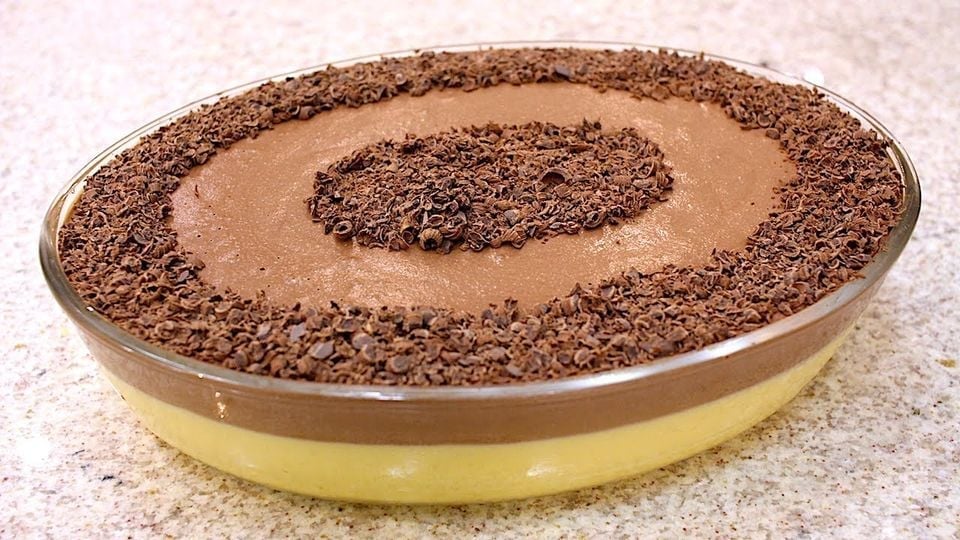 Bata todos os ingredientes do mousse no liquidificador por 5 minutos. Coloque em uma tigela e leve à geladeira. Derreta o chocolate em banho – maria. Desligue o fogo e misture o creme de leite. Após o creme esfriar, cubra o mousse e decore com coco ralado. Leve à geladeira novamente. Sirva gelado.