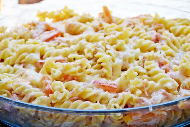 Bata no liquidificador o requeijão, o leite, o creme de leite, o creme de queijo, sal, pimenta e noz-moscada até homogeneizar. Espalhe um pouco de molho no fundo de um refratário médio. Adicione os ninhos de macarrão no refratário e recheie com a ervilha e o presunto. Despeje o molho restante e polvilhe com parmesão. Cubra com papel-alumínio e leve ao forno médio, preaquecido, por 30 minutos. Retire o papel e asse por mais 30 minutos ou até gratinar e está pronto, sirva em seguida. Bom apetite.