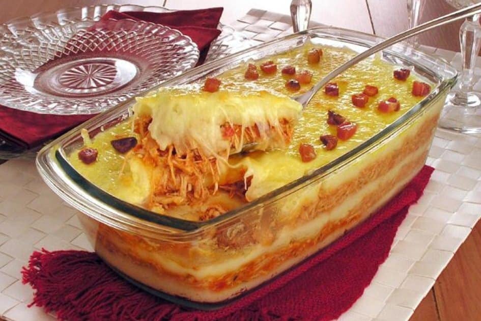 Purê recheado com frango