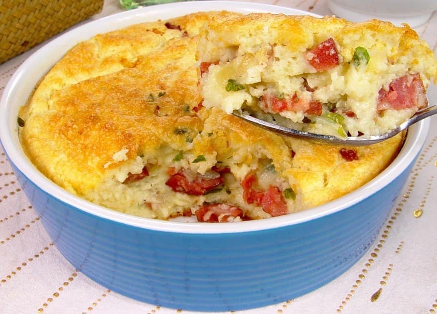 Torta suculenta de batata com calabresa