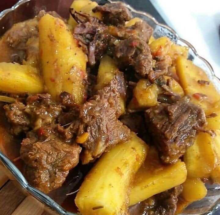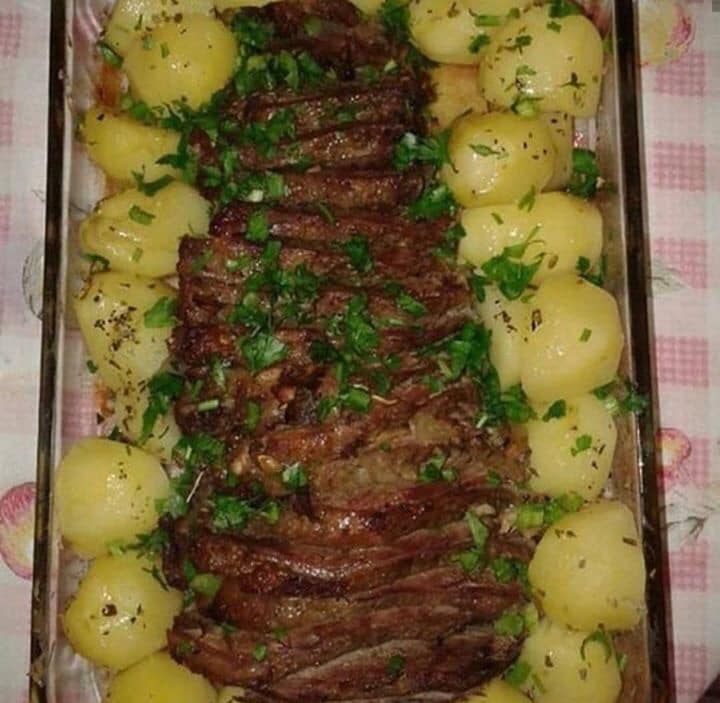 Carne com batatas de vinho tinto