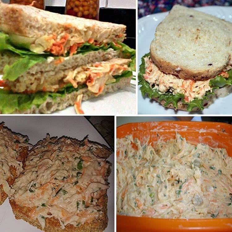 Em uma panela, refogue o frango desfiado com os temperos a gosto. Reserve até esfriar. Transfira o frango refogado para uma tigela e acrescente a cebola e o tomate picados, a cenoura ralada, o milho, a salsinha, a cebolinha e o sal a gosto e misture bem. Adicione maionese até a obter a consistência desejada do recheio. Coloque o recheio entre 2 fatias de pão de forma e sirva. A receita rende cerca de 5 porções, dependendo da quantidade de maionese que for adicionada.