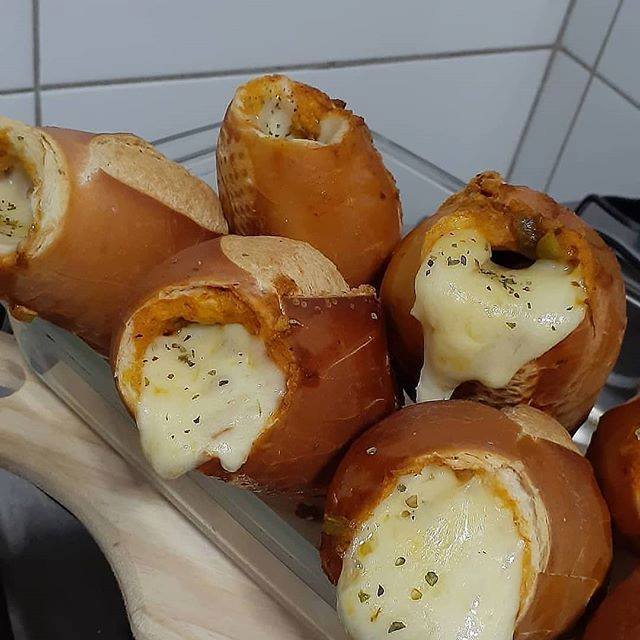 Primeiro refogue o alho e a cebola no azeite, depois adicione a carne e deixe refogar bem, coloque o tomate picadinho, o orégano, sal, pimenta do reino, o molho e o sazon mexa bem. Em seguida coloque dois copos de água, tampe a panela e deixe a carne cozinhar, quando a carne estiver cozida coloque meia lata de milho, azeitonas picadinhas e cheiro verde! Em seguida é só rechear os pães. Coloque uma fatia de mussarela no fundo do pão e depois a carne e finaliza com mais mussarela. Depois leve a forno pré aquecido até derreter o queijo.