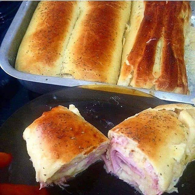 Numa bacia junte todos os ingredientes deixando a farinha por último que deverá ser colocada aos poucos até a massa ficar macia, elástica e desgrudar das mãos. Coloque pra crescer por 1 hora ou até dobrar de volume. Modele os salgadinhos, passe o recheio e ponha pra crescer de novo por uma hora ou até dobrar de volume. Pincele com gema de ovo e asse em forno médio até dourar, cerca de 20 minutos. No recheio desse americano tem molho de tomate, presunto, mussarela, tomate picadinho e orégano.