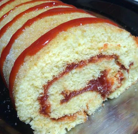 Depois do tempo indicado, desenrole a massa e espalhe a goiabada sobre ela. Volte a enrolar e, no momento de servir, decore com fios de goiabada.