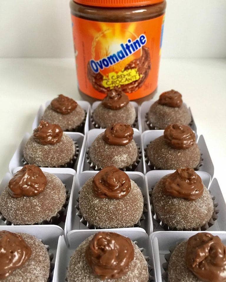 Mexa bem até que os ingredientes estejam bem misturados e desgrudando do fundo da panela. Despeje em uma bandeja ou vasilha e deixe-o esfriando por alguns minutos. Agora pegue o chocolate resfriado com a ajuda de uma colher, faça moldes de pequenas bolas e passe sobre o Ovomaltine.