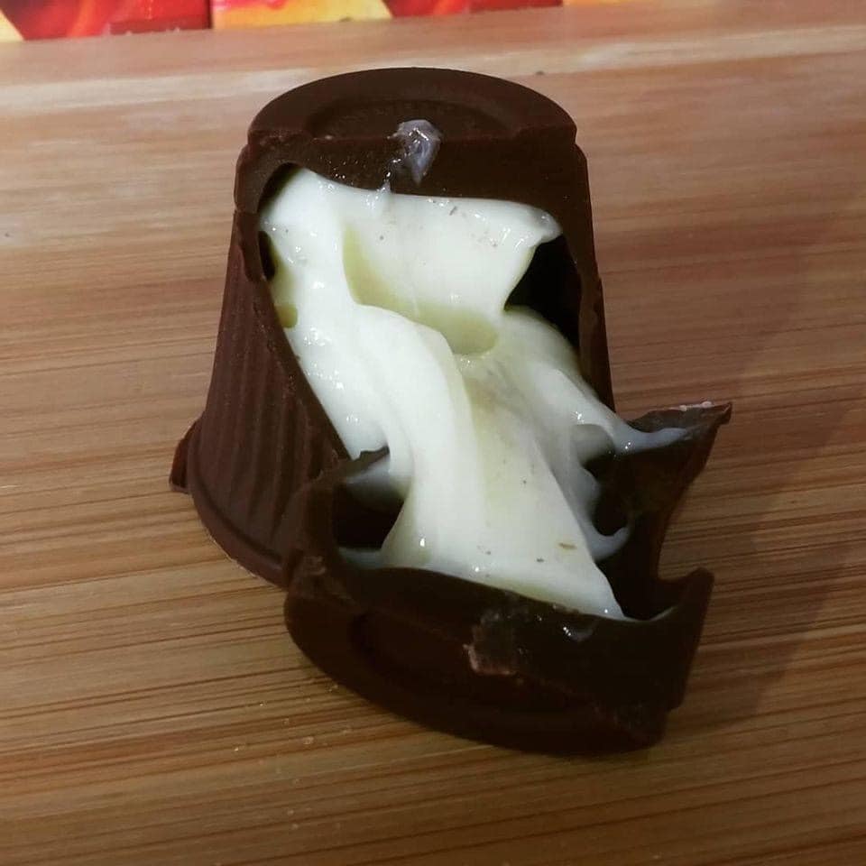 Passe o chocolate ja derretido nas forminhas de molde, passe bem para não ficar nenhuma falha. Não use todo o chocolate derretido deixe sobrar chocolate suficiente para fechar as trufas. Leve-as para o freezer por uns 5 minutos.