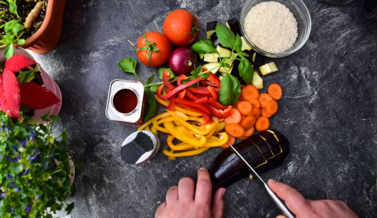 Inizia lavando le verdure, asciugale e tagliale a dadini. Per il peperone, rimuovi la calotta, i semi e i filamenti.