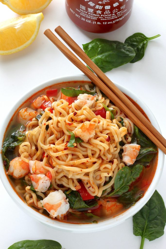 Questi Ramen con gamberetti Sriracha in 20 minuti sono così facili e deliziosi! Una gustosa ricetta per la zuppa di ramen che piacerà a tutta la famiglia!