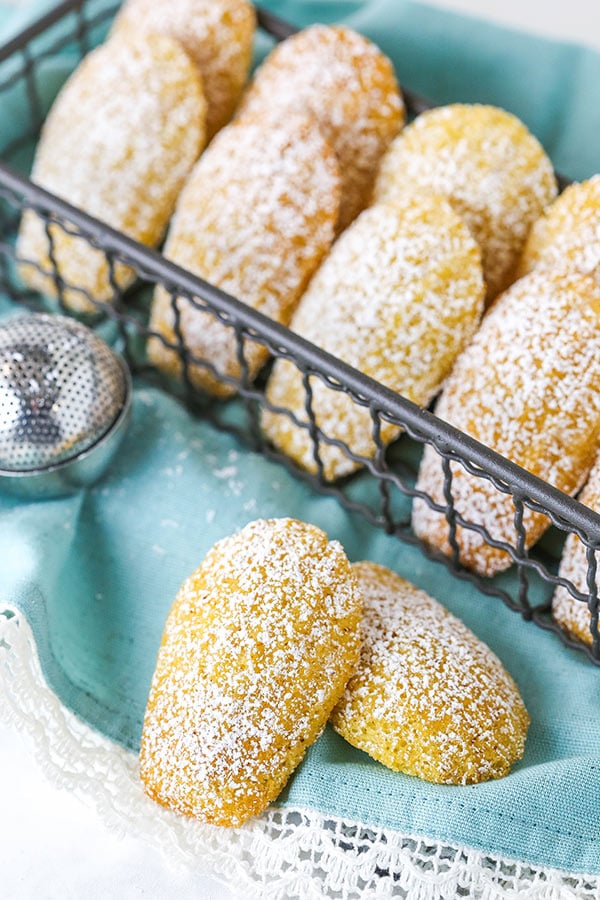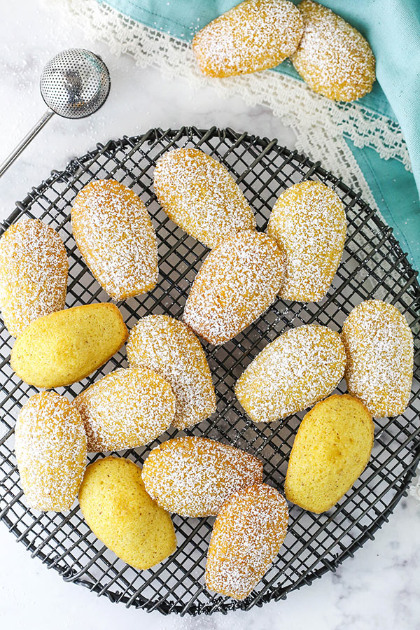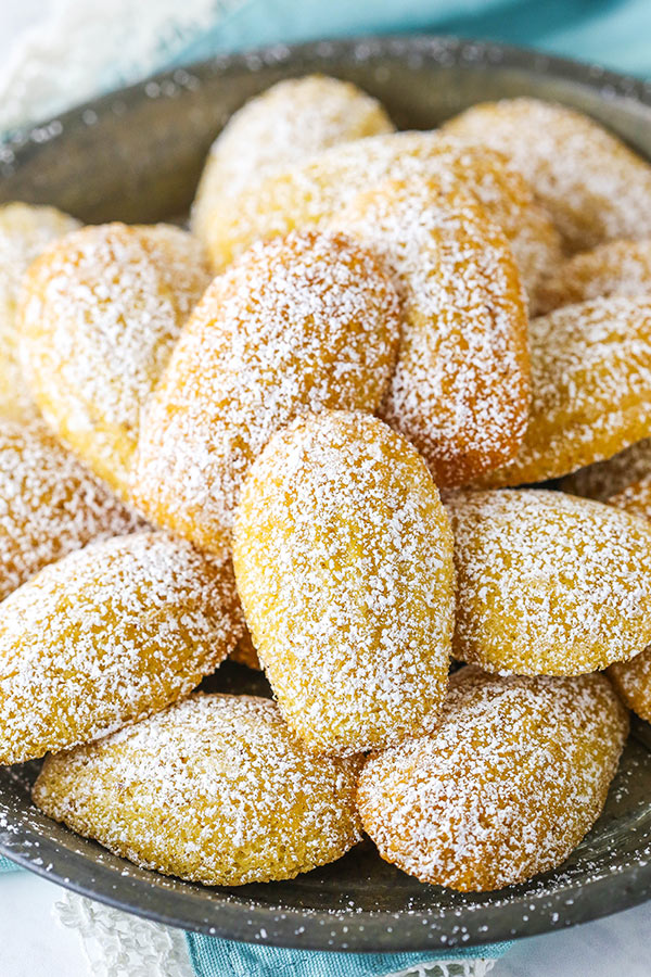Queste Madeleine francesi burrose fatte in casa sono torte da tè leggere e ariose spolverate di zucchero a velo. Potete mantenerle semplici per un trattamento casual o prepararle per le vacanze!