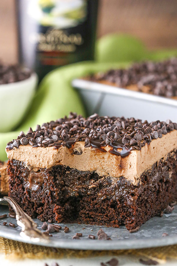 Torta al cioccolato Baileys umida imbevuta di più cioccolato e crema irlandese Baileys! È condita con panna montata fresca Baileys per una delizia che non vorrai smettere di mangiare!
