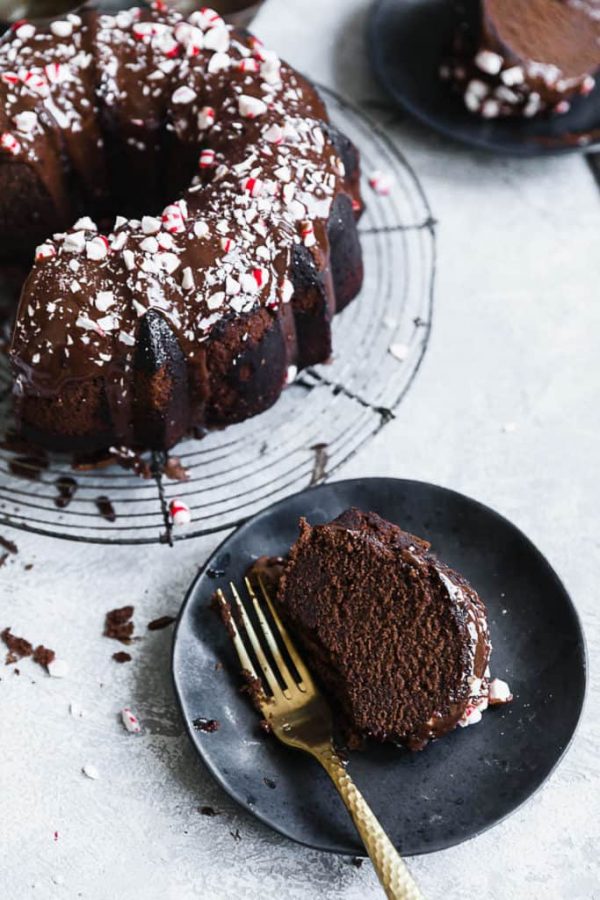 Torta pound al cioccolato definitiva con glassa di ganache alla menta piperita, da Grandbaby Cakes