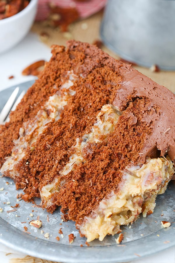 La torta al cioccolato tedesca è una delle classiche ricette di torte al cioccolato! La torta al cioccolato umida abbinata al ripieno di noci di cocco e alla glassa al cioccolato è semplicemente deliziosa insieme!