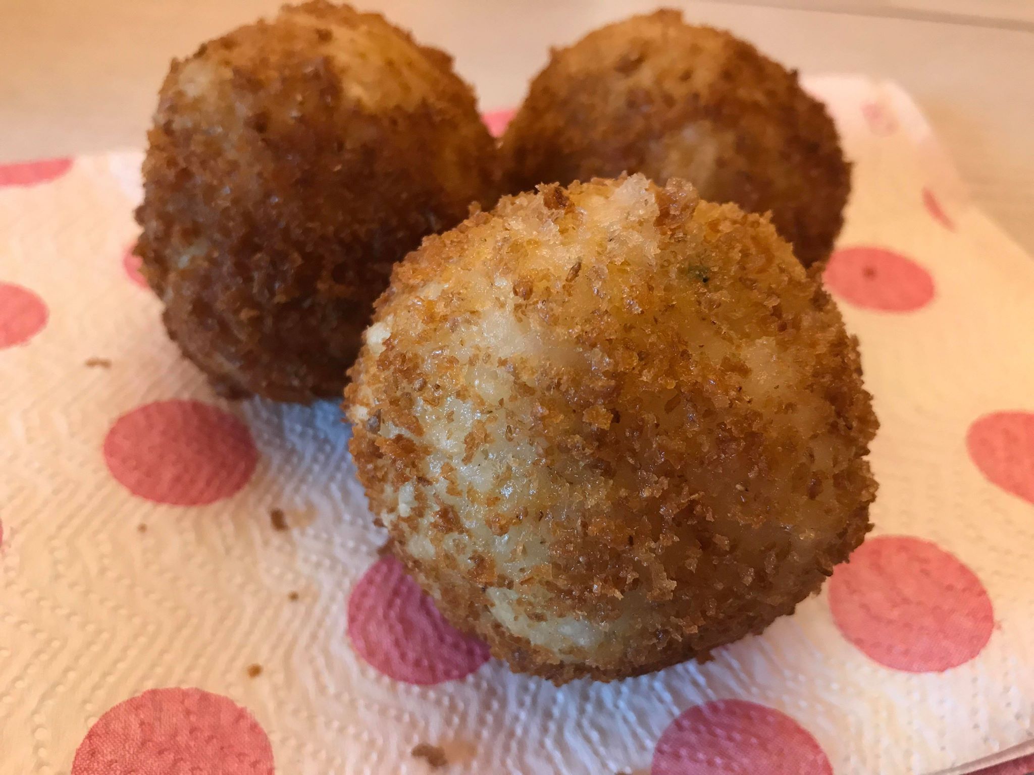 Step 5A parte prepariamo la panatura. Sbattiamo due uova, dove immergeremo i nostri arancini, in un altro piatto mettiamo il pangrattato. Immergiamo i nostri arancini prima nelle uova sbattute e poi nel pangrattato. |