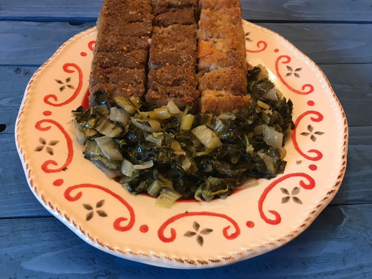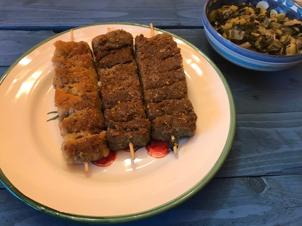 Per la realizzazione di questa ricetta ho usato come ingredienti principali: gli involtini di pancetta e le braciole messinesi al pistacchio della Macelleria Punto Carni, le cicorie bio e la bieta coste bio precotte della ditta Oro nell’orto. Per piatti da portata ho usato il piatto e la ciotola dell’azienda Ceramica Artistica Sorrentina.