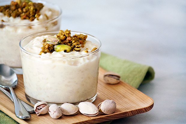 Step 1Mettete ad ammorbidirsi in acqua i mirtilli per 20 minuti tritate, a parte, la metà dei pistacchi molto finemente. Lavate il riso, versatelo in un pentolino antiaderente e quindi fatelo cuocere con un baccello di vaniglia, il pizzico di sale e 50 gr di zucchero, assieme al latte, finché il latte è tutto assorbito, circa 15 minuti. A metà cottura aggiungete i pistacchi tritati finemente e lo zafferano e mescolate. |