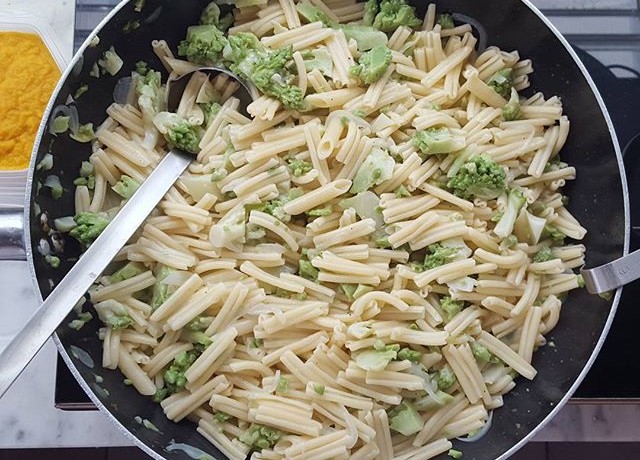 Step 3Se vi si dovesse asciugare il fondo aggiungete poca acqua calda. Nel frattempo lessate la pasta e fatela poi saltare un attimo nel condimento. |