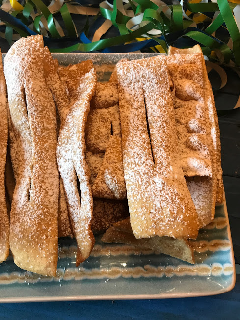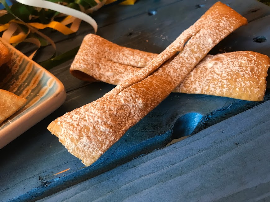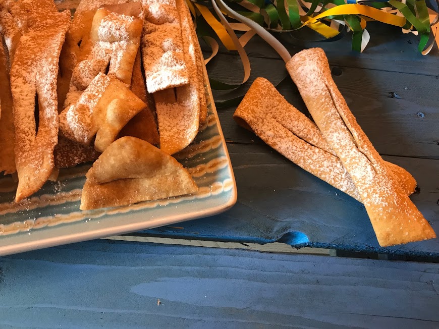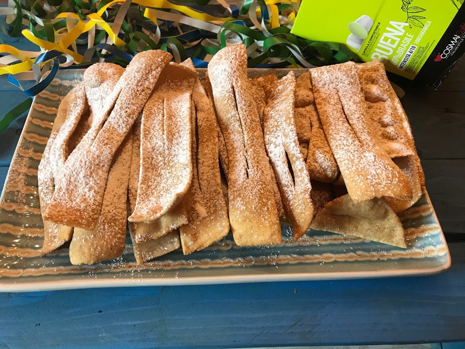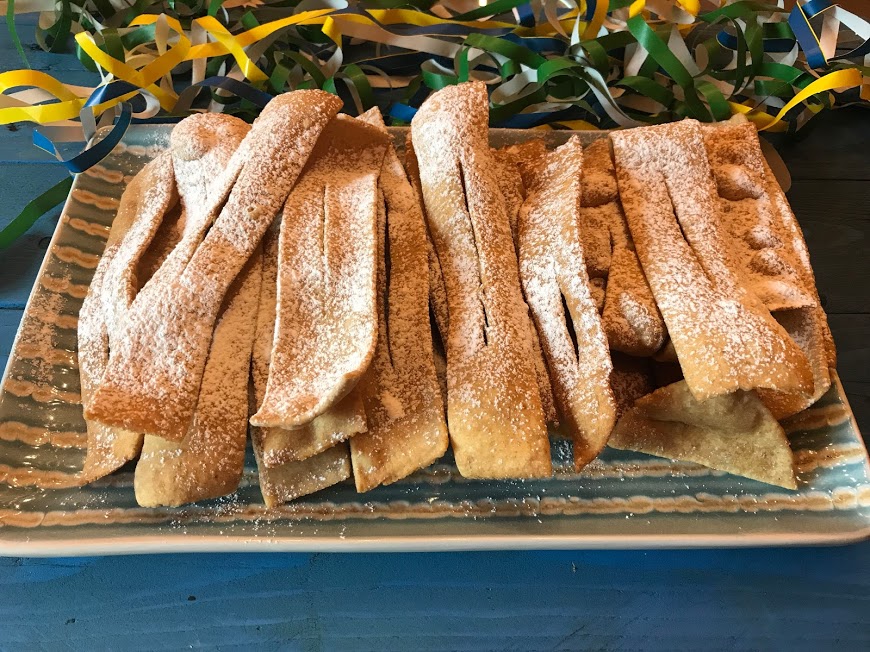 Step 9Scolare le chiacchiere, asciugarle dall'olio in eccesso su carta assorbente e, una volta fredde, spolverizzarle con lo zucchero a velo. |