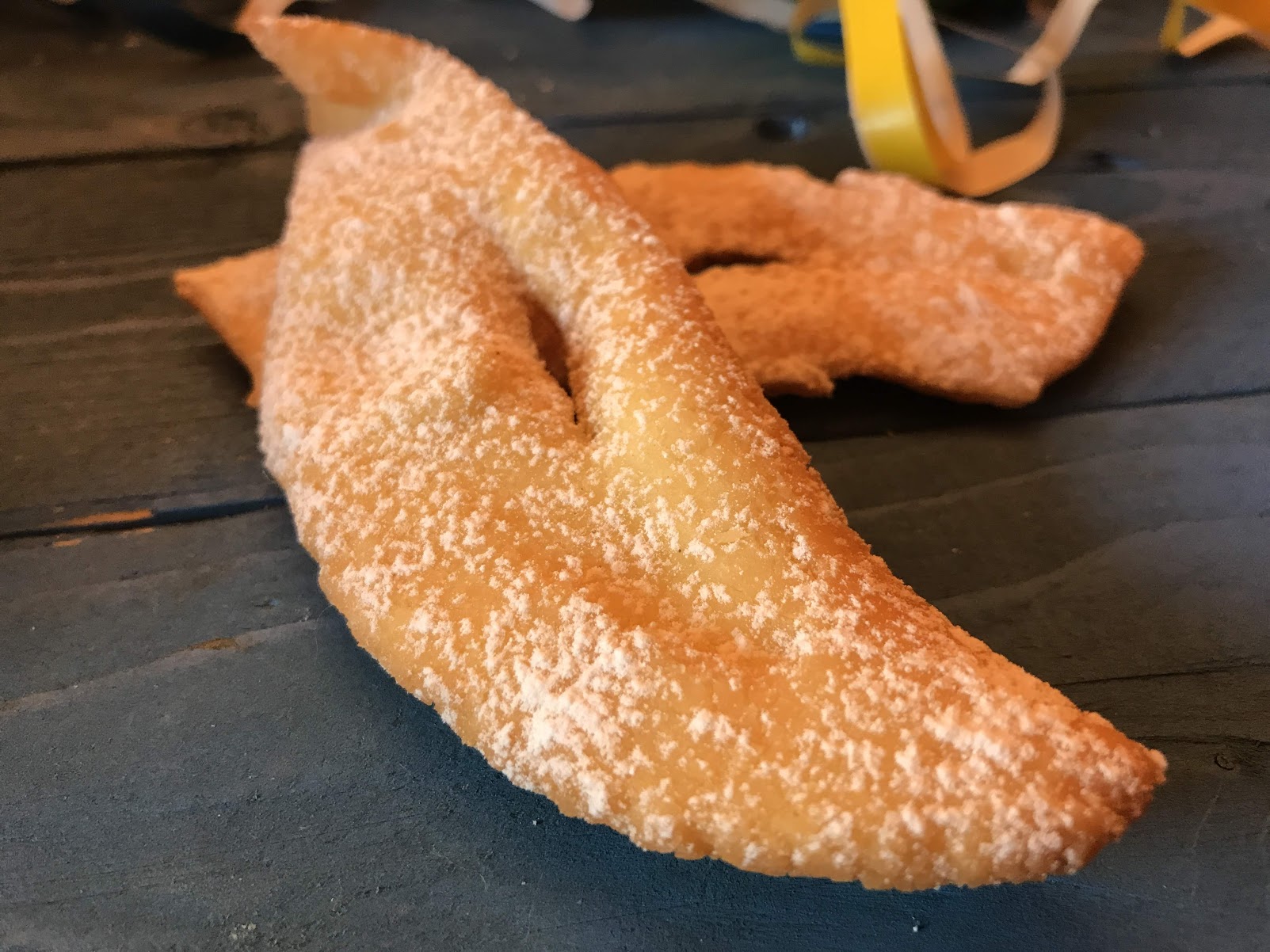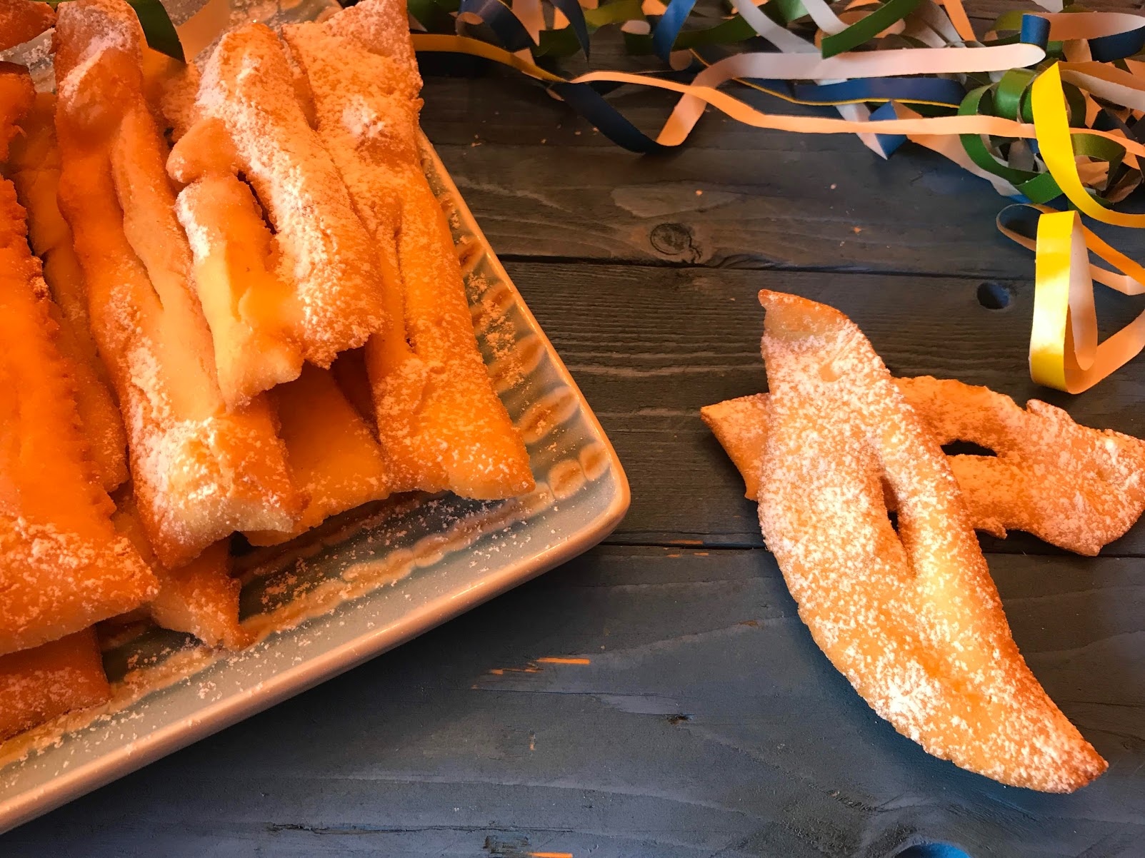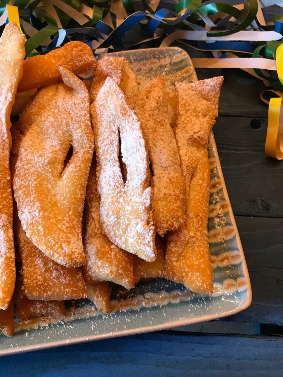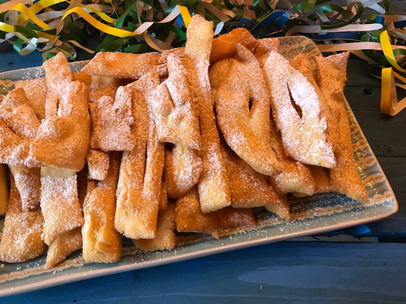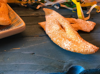 Step 8Scolare le chiacchiere, asciugarle dall'olio in eccesso su carta assorbente e, una volta fredde, spolverizzarle con lo zucchero a velo. |