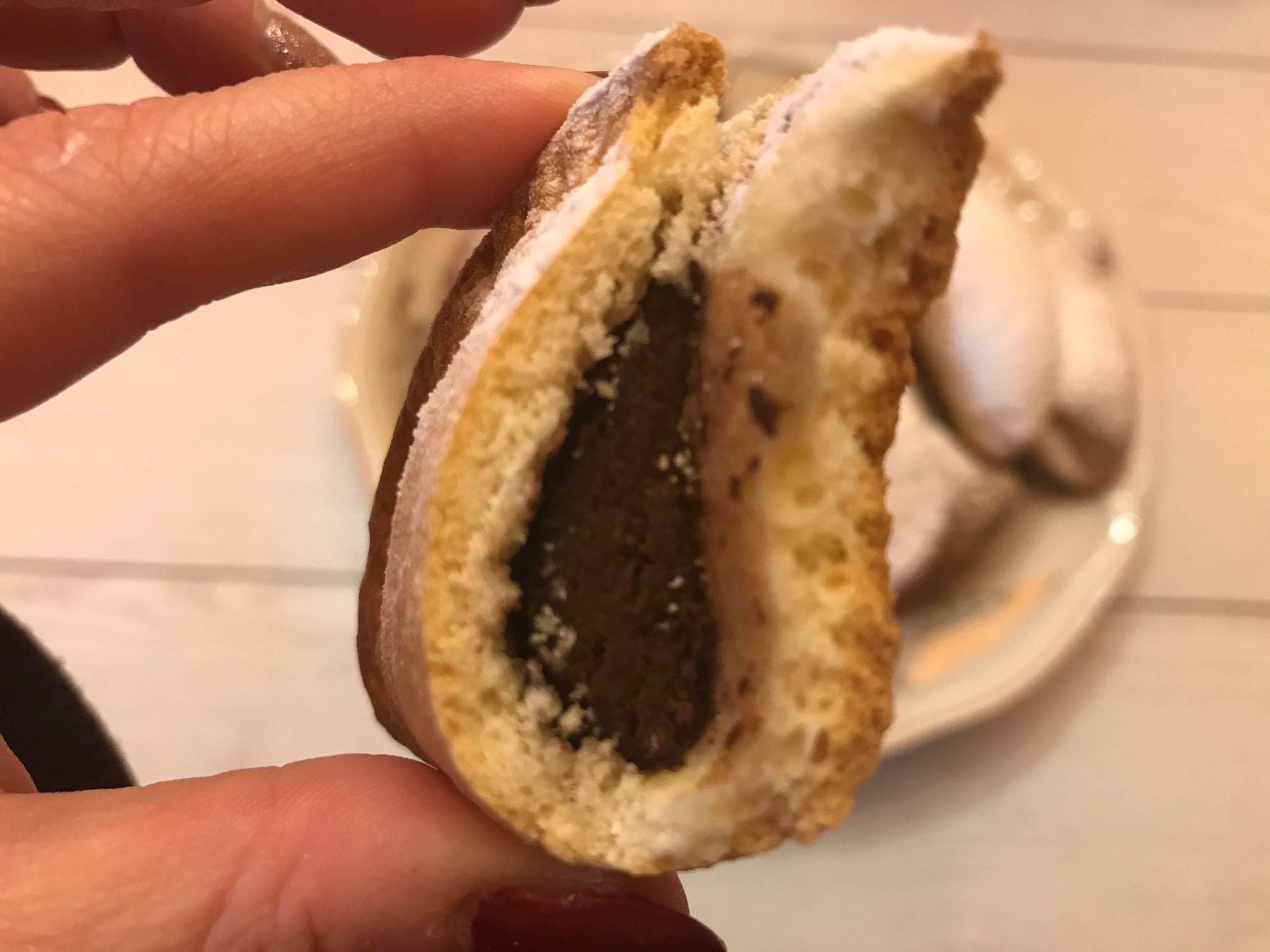 Step 2Una volta che si sono amalgamati tutti gli ingredienti e quando il composto risulterà liscio ed omogeneo, potete formare dei dischi. Dopo aver formato i dischi prendete la vostra crema spalmabile che più vi piace e ponetela in mezzo ad ogni disco. Dopo formate delle mezzelune. Per farsi che quando sono in forno non fuoriesca il composto pigiatele con una forchetta. |