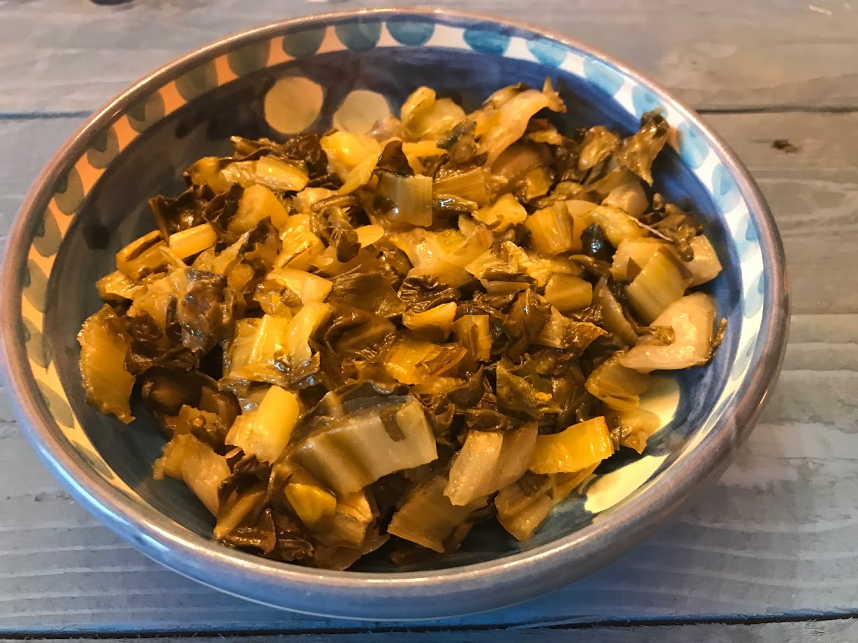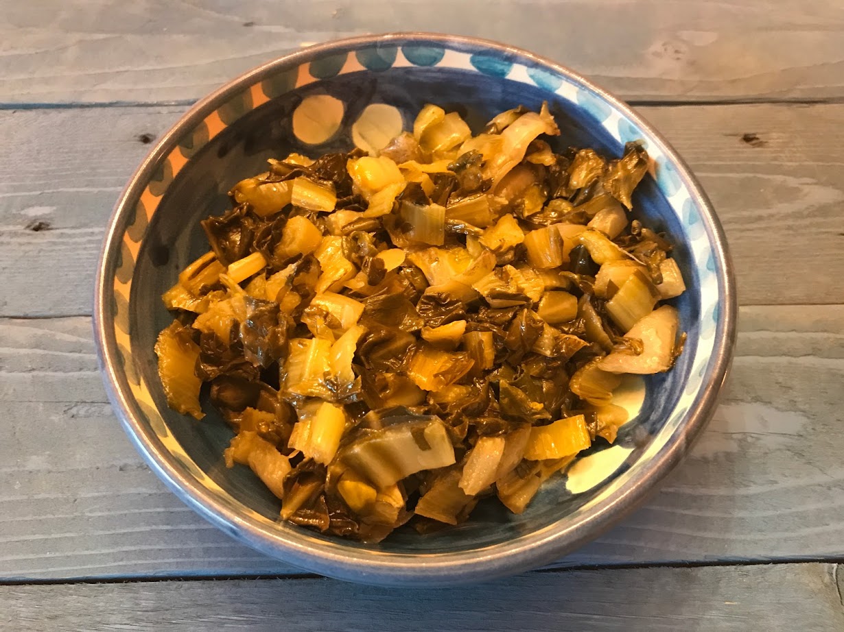 Per la realizzazione di questa ricetta ho usato come ingredienti principali: la cicoria della ditta Oro dell’orto, la bieta a coste della ditta Oro dell’orto. Come piatto da portata ho usato il piatto della ditta Ceramica Artistica Sorrentina.