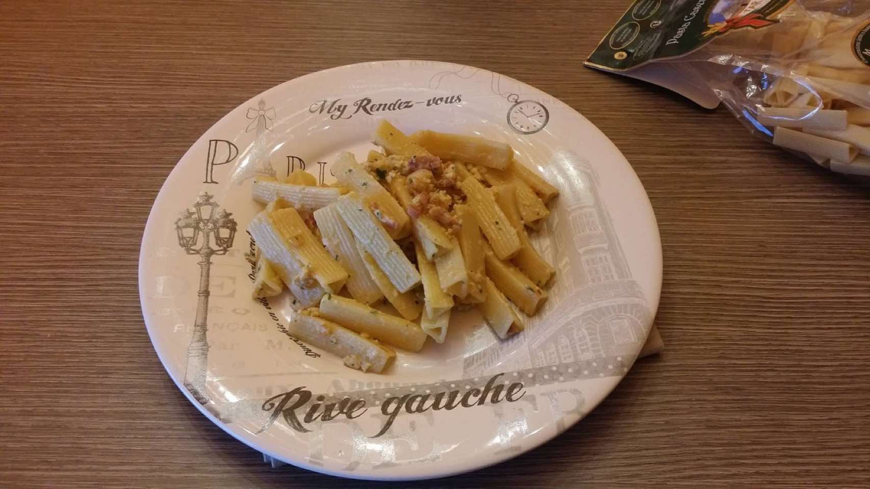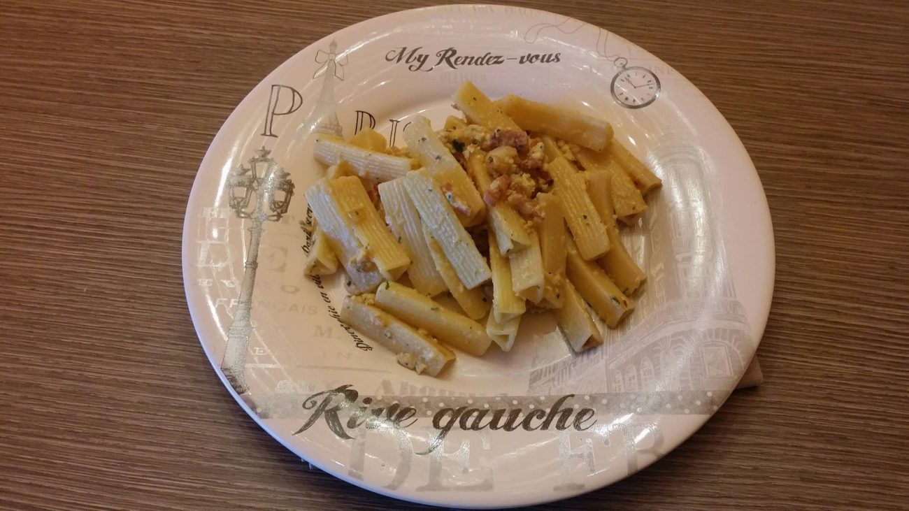 Una volta raggiunto il bollore, salate l'acqua e mettete i maccheroni triangolari. Scolate la pasta al dente e trasferitela subito nella padella con la pancetta, mescolando. Quindi, aggiungete l'uovo precedentemente sbattuto con il formaggio e amalgamate bene; unite altro pep, il pecorino romano e il restante olio, mescolate ancora e servite subito. |