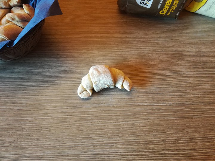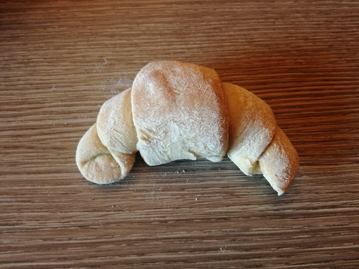 I nostri cornetti integrali saranno vuoti all'interno quindi non li farciamo e possiamo giĂ richiuderli arrotolandoli formando i cornetti. |