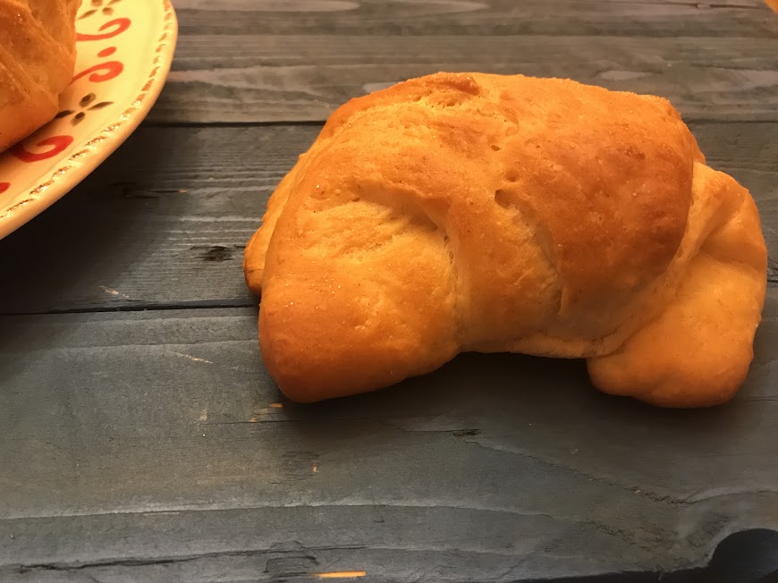 Step 9Arrotolare i triangoli partendo dalla base piĂą larga, volendo si possono farcire con marmellata, crema o cioccolata. |