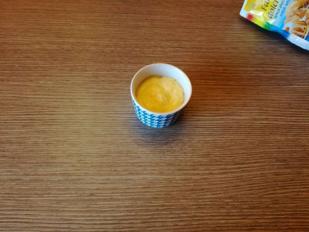 Scaldiamo il latte in un pentolino mentre, a parte, mescoliamo tuorli, zucchero, vaniglia. Uniamo, poi, la farina e mescoliamo. |