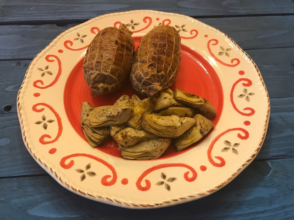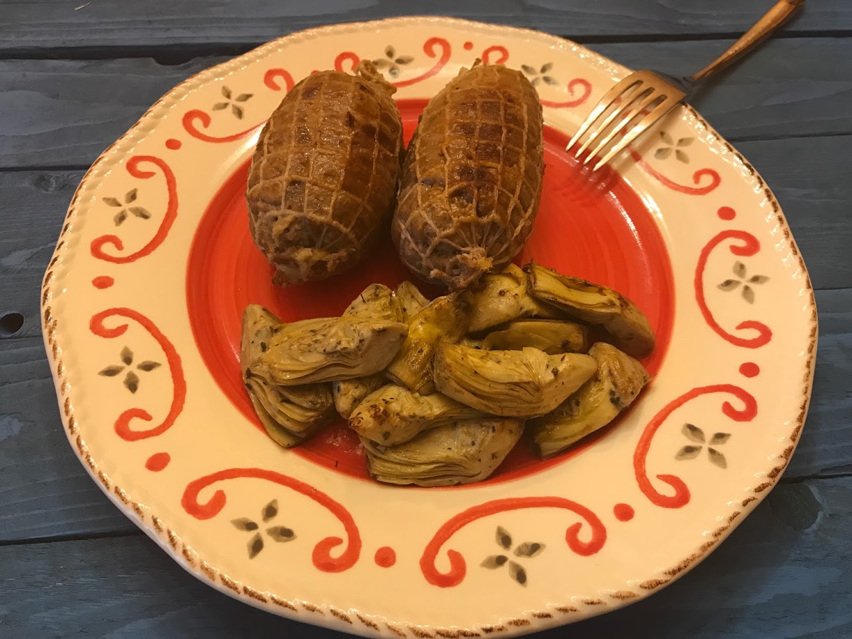 Per la realizzazione di questa ricetta ho usato come ingredienti principali: i falsomagrini della Macelleria Punto Carni, piccoli rollè farciti con mollica condita, pancetta, formaggio e uova sode. La loro peculiarità sta nella raffinatezza delle dimensioni e quindi nella loro presentazione in tavola. Unisce i gusti di grandi e bambini e con un po’ di fantasia si presenta in tavola come un piatto molto elegante e gustoso, e i carciofini sott’olio della ditta Za.Be Srl.