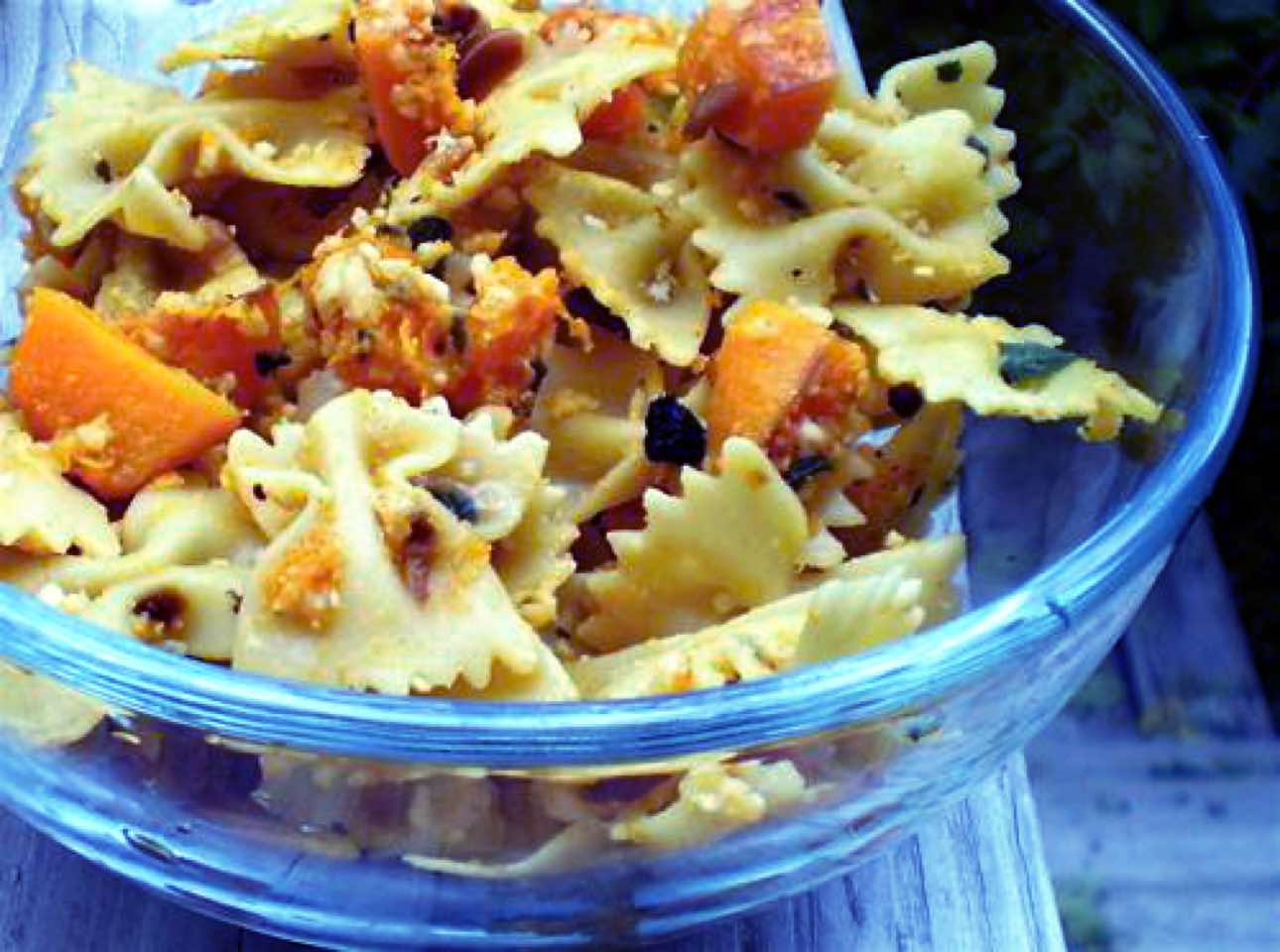 Scoliamo le farfalle qualche minuto prima della cottura e uniamole alla zucca nella padella. Amalgamiamo qualche minuto a fuoco basso. |