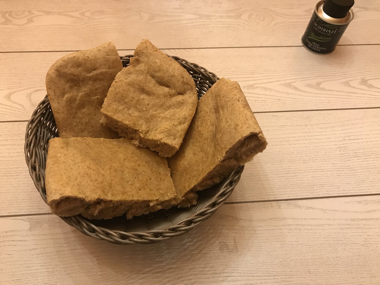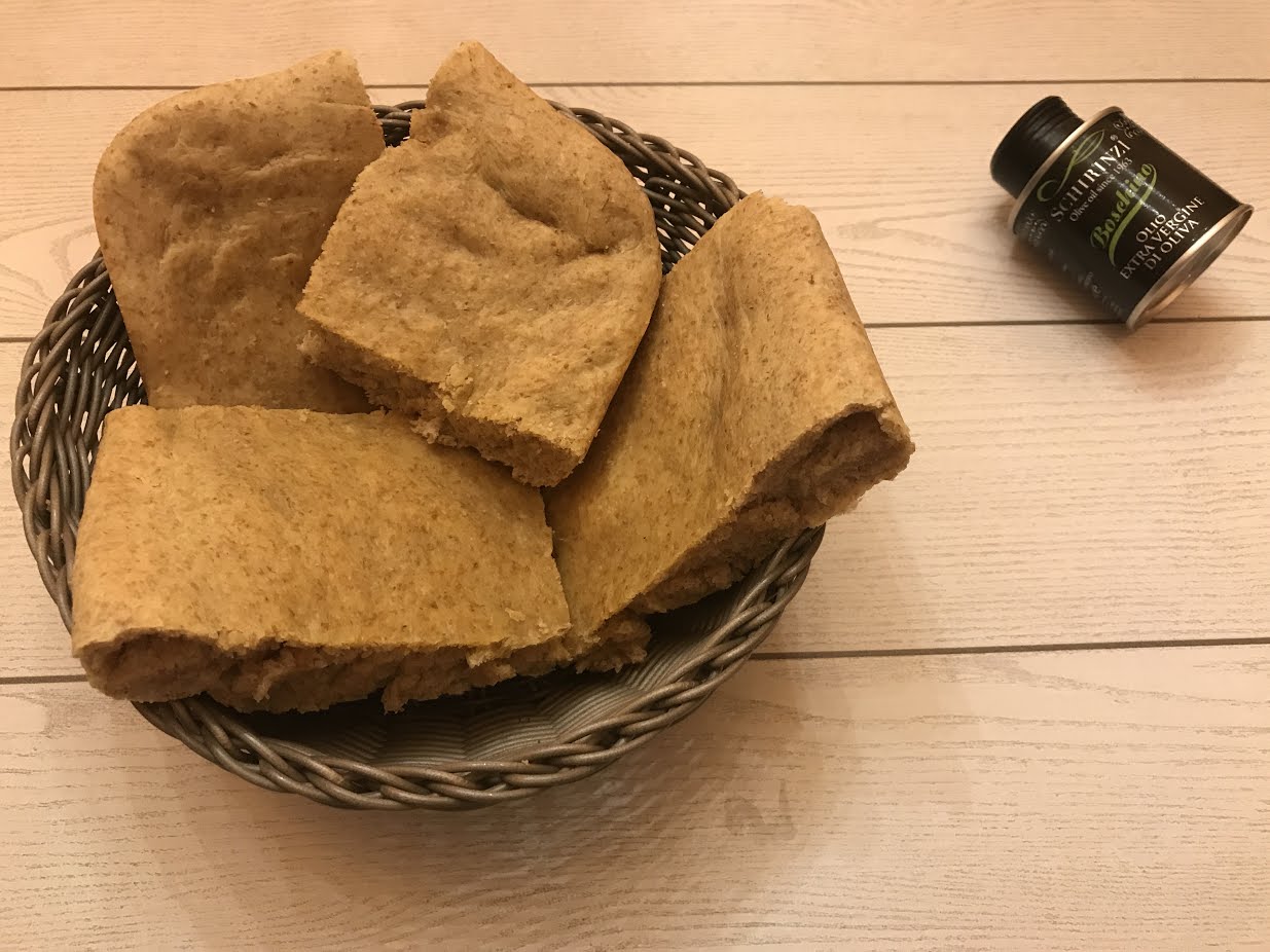 Per la realizzazione di questa ricetta ho usato come ingredienti principali: la farina integrale della ditta Molino Bogetto, l’olio extra vergine di oliva Boschino della ditta Schirinzi. Per la decorazione del piatto ho usato i piattini per festa della ditta partyngs.