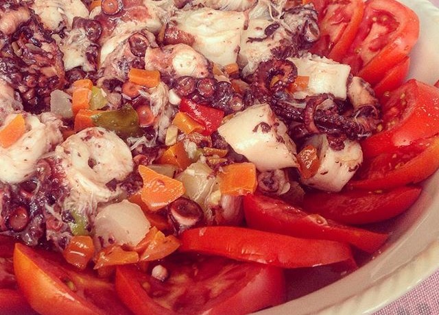 Coprite la pentola e fate cuocere lentamente per circa un’ora. Spegnere il fuoco e lasciare intiepidire nella stessa acqua di cottura.Quando la temperatura del polpo consente di maneggiarlo senza bruciarvi, togliete il becco e la pelle che ricopre la testa, e mettetelo a raffreddare chiudendolo in un contenitore di misura. Riponetelo qualche ora in frigorifero. |