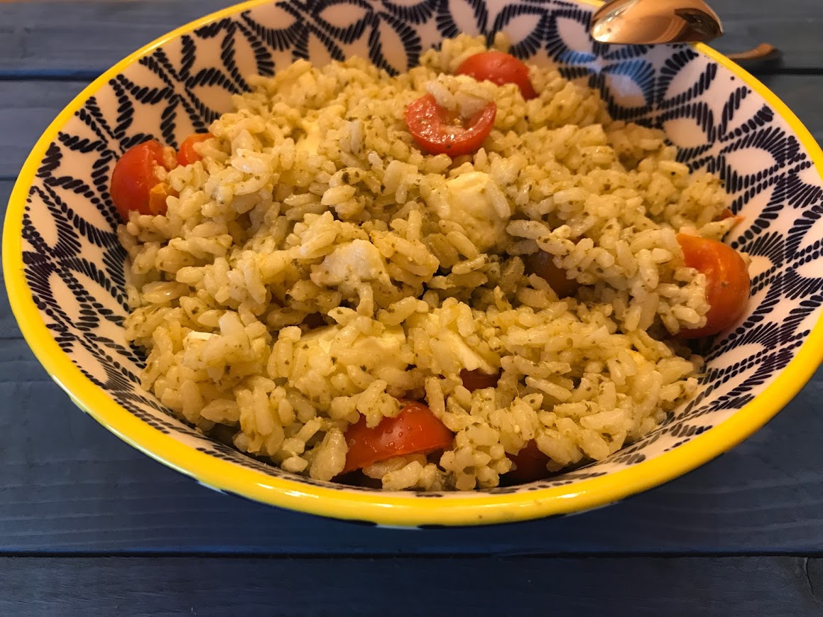 Step 3E' ora di comporre l'insalata di riso. Prendiamo un piatto da portata e versiamo il riso, aggiungiamo il pesto e iniziamo a mescolare, poi aggiungiamo i pomodorini e la mozzarella a dadini. Lasciamo raffreddare e mettiamo in frigo per una mezza mattinata o dalla sera prima. Una volta raffreddata possiamo servirla fredda. |