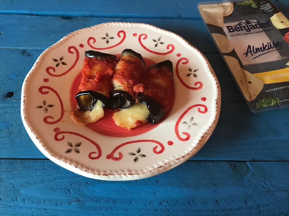 Step 4E' ora di formare gli involtini di melanzane. Prendiamo una pirofila, e adagiamo una fetta di melanzana, sopra per ogni melanzane aggiungeremo le Fettine Almkäse classiche e chiudiamo l'involtino. Quando avremmo esaurito tutti i nostri ingredienti, adagiamo su ogni involtino un cucchiaio di passata di pomodoro. Mettiamo in forno precedentemente preriscaldato per 15-30 minuti a 180°C. |
