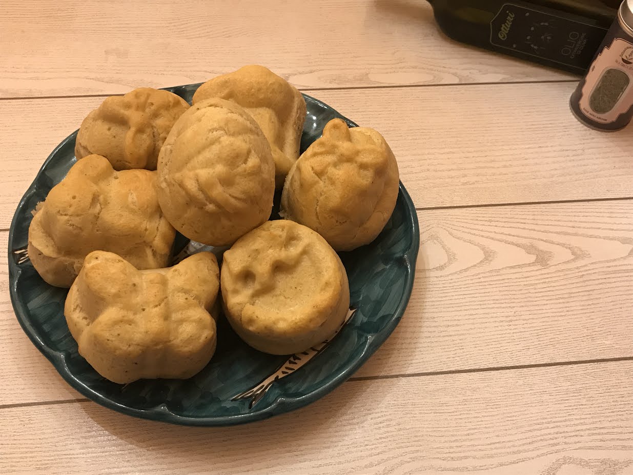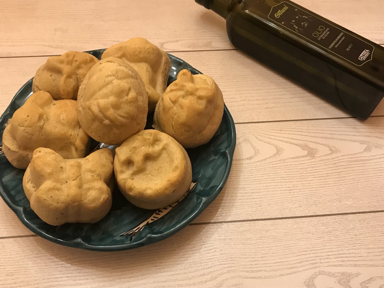 Per la realizzazione di questa ricetta ho usato come ingredienti principali: la farina 0 della ditta Molino Bogetto, il sale agli aromi dell’Azienda agricola Tra la terra e il cielo e l’olio extra vergine di oliva estratto a freddo dell’Azienda agricola Satima e il piatto in ceramica della ditta Ceramica artistica Sorrentina.