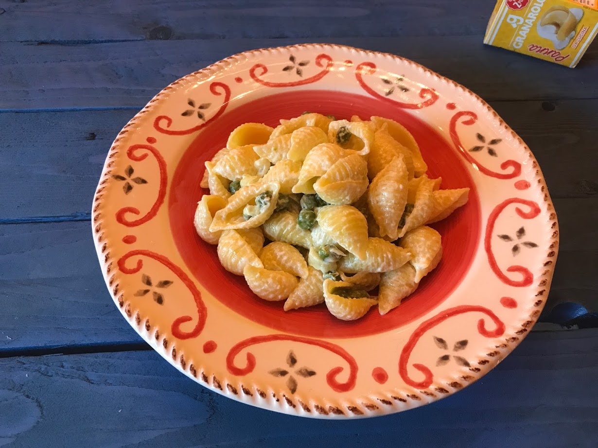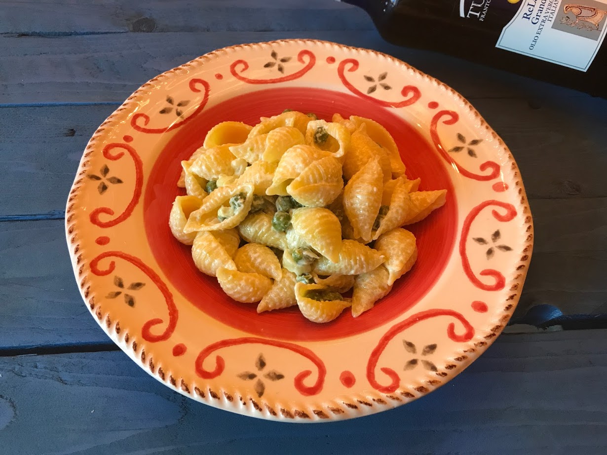 Per la realizzazione di questa ricetta ho usato come ingredienti principali: la Panna da Cucina Granarolo UHT della ditta Granarolo, l’olio extra vergine di oliva TUSCUS Re Laris Grand Cru del Frantoio Tuscus, la pasta all’uovo artigianale della ditta Terra Nostra San Ginesio e i piselli della ditta Oro dell’orto.