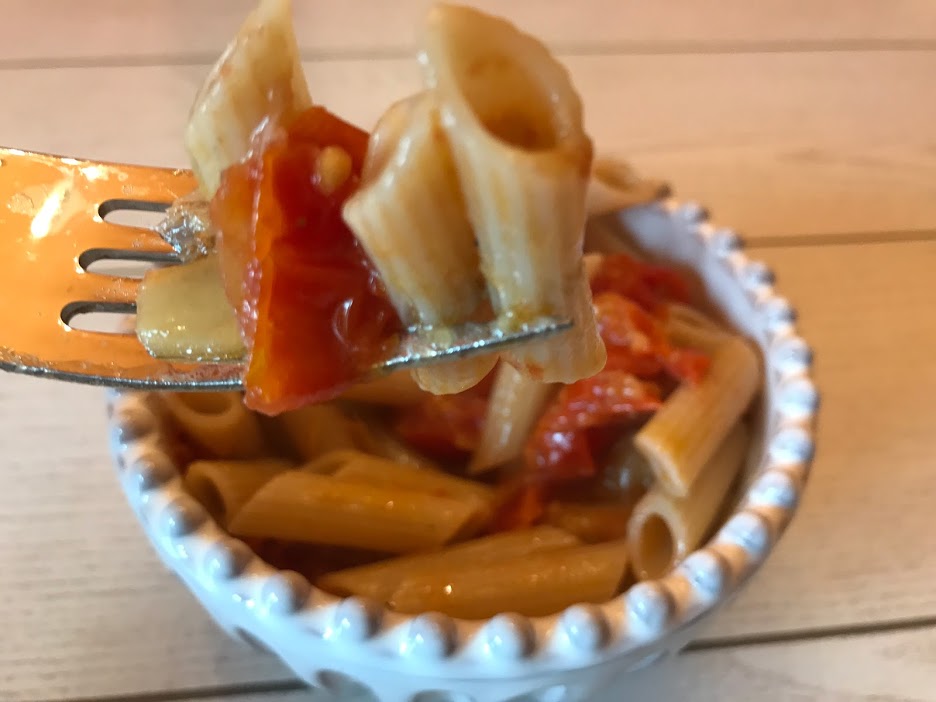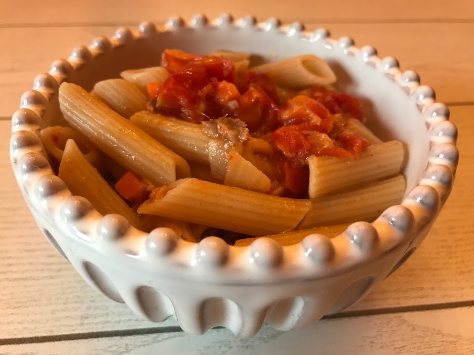 Per la realizzazione delle penne integrali con farina di riso con pomodorini tonno e acciughe ripiene di capperi ho usato come ingrediente principali: l’olio extra vergine di oliva dell’ Agriturismo Valle dei Venti e i pomodorini biologici della ditta Italfreeze. Come abbellimento scenografico ho usato: le coppette piccole per gelato in ceramica, che io ho trasformato anche in coppetta da portata per le penne integrali con farina di riso con pomodorini tonno e acciughe ripiene di capperi della ditta Ceramiche Edelweiss.