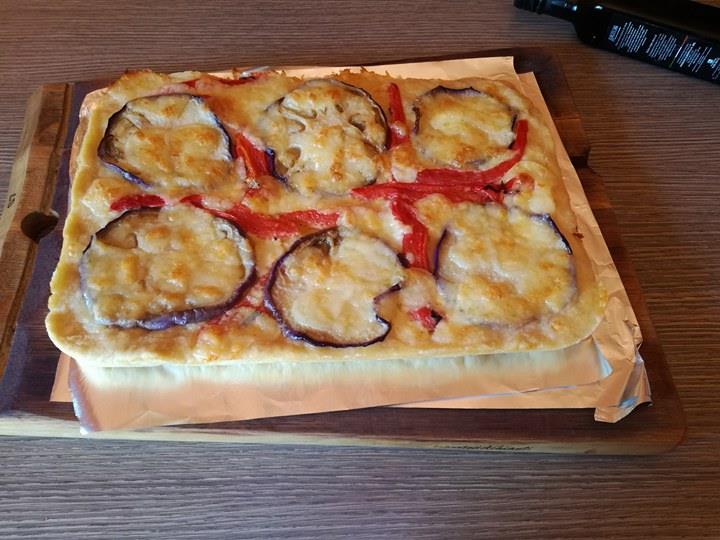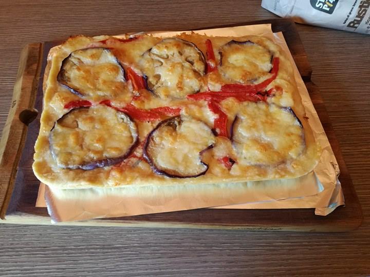 Passo 4Riscalda il forno a 220°C con calore statico sopra e sotto. Allarga l'impasto (circa 5 mm di spessore) sul piano di lavoro infarinato usando un matterello, poi passalo su una teglia da forno rivestita di carta da forno. Farcisci con i peperoni, la melanzana appassita lasciando un bordo. Insaporisci con sale e pepe, poi passa la teglia nel forno e fai cuocere per 10 minuti. Nel frattempo fai sgocciolare la mozzarella, tagliale a fette e passati i 10 minuti distribuiscila sulla pizza. Rimetti la teglia in forno e fai cuocere per ancora 10-15 minuti. |