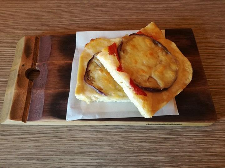 Passo 2Lava la melanzana, tagliala a rondelle fine e falla friggere con poco olio in padella fino a che si appassisce un pò. Una volta che si è appassita toglila e lasciala scolare bene bene dall'olio in eccesso per qualche minuto o fino a che la pasta della pizza è pronta. |