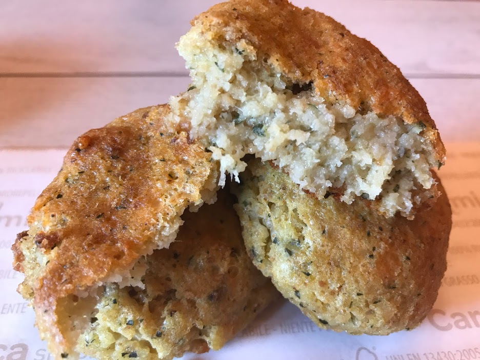 Per la preparazione delle polpette di zucchine e provolone al forno ho usato come ingredienti principali: il provolone del sito Andiamo a Tavola e le zucchine a dadini della ditta Italfreeze. Come abbellimento scenografico ho usato: le coppette piccole per gelato in ceramica, che io ho trasformato anche in coppetta da portata per le polpette alle zucchine e provolone al forno della ditta Ceramiche Edelweiss e la carta assorbente per fritti della ditta Spinsanti.