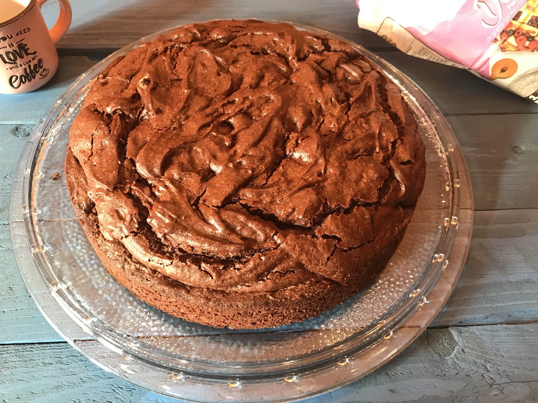 Rimuovere la farfalla e aggiungere la farina, la fecola, il cacao, la vanillina, lievito, le due tazzine di caffè e l'olio: 2 min. vel. 5