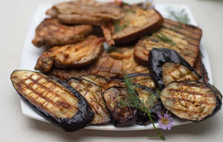 Prepara le melanzane lavandole, spuntandole e tagliandole a fette di circa 1,5 cm di spessore. Cuoci le fette sulla griglia bollente che avrai leggermente unto con un filo d’olio. Cuoci pochi minuti per lato, circa 4 o fino a quando non saranno morbide.