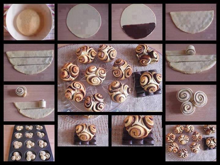 Fare una fontana con la farina mescolata al lievito e al centro mettete tutti gli altri ingredienti pian piano. Lavorare l’impasto per almeno 10-15 e formare una palla che , in un contenitore, terrete in forno caldo per 1 ora e mezza, ma anche di più se pensate che ancora l’impasto debba lievitare. Quando l’impasto sarà lievitato uscitelo dal forno (che riaccenderete per la cottura) e stendetelo rettangolare (circa 35×50) poi spalmatelo con la nutella e arrotolatelo dal lato lungo e tagliatelo in 12 pezzi che metterete (lasciandoli un pò staccati l’uno dall’altro) in uno stampo rivestito con carta da forno.