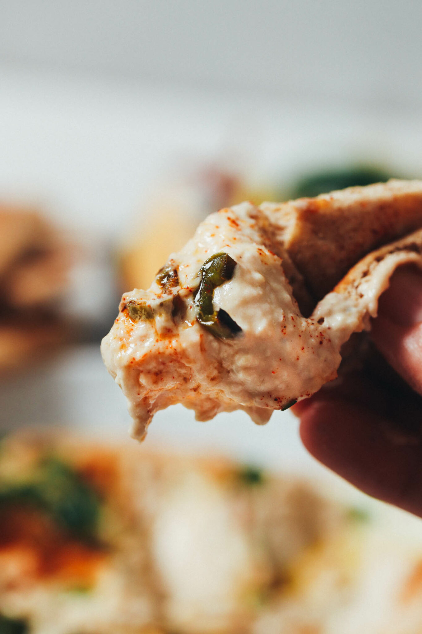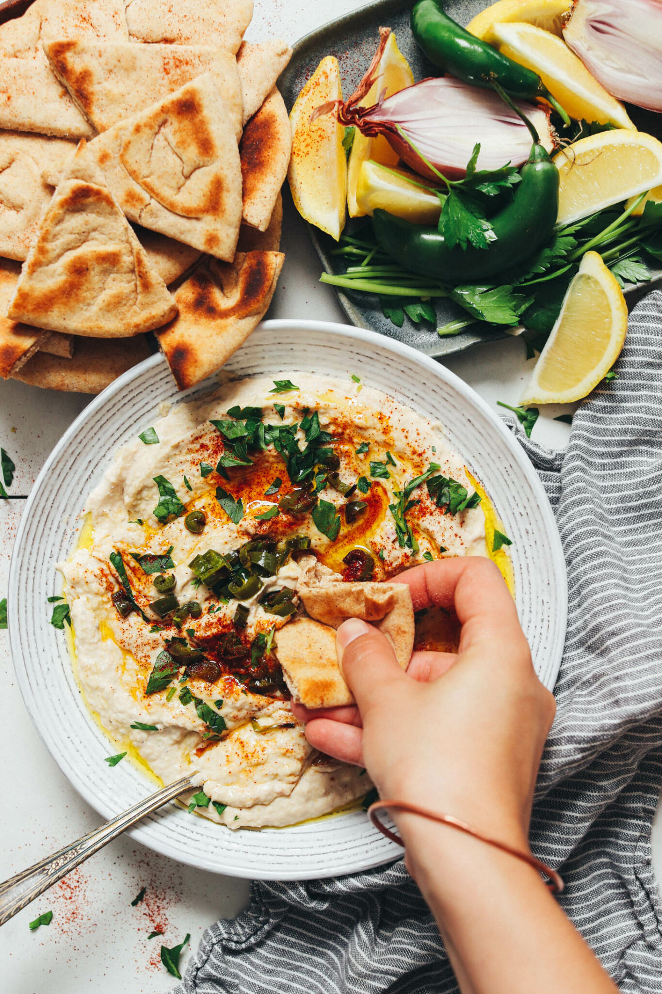 Sebbene non sia un hummus tradizionale in quanto non utilizza i ceci, questa salsa cremosa e sognante di fagioli bianchi è ispirata all’hummus con un tocco affumicato e speziato!
