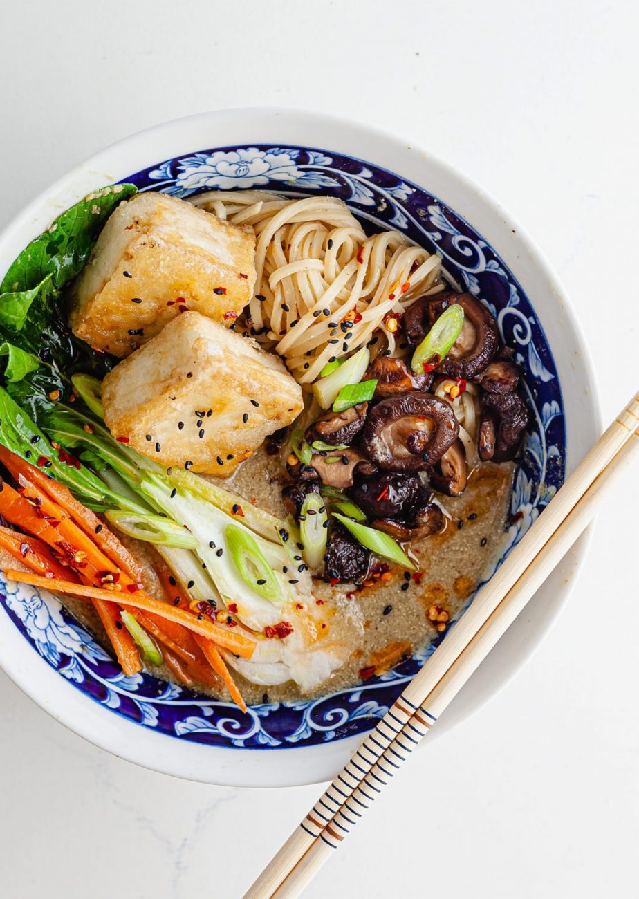 - Serviamo il nostro ramen con tofu fritto e pak choi, oltre ad alcune verdure fresche. Ma puoi semplificare il piatto saltando il tofu e il pak choi.