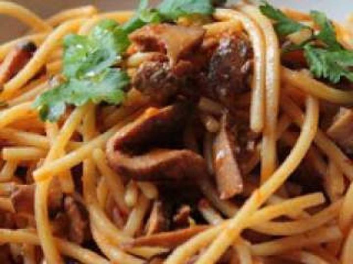 In un tegame far soffriggere la cipolla tritata nell’olio, aggiungere i rositi silani, dopo averli puliti e sbollentati per pochi minuti, affettarli sottilmente e far cuocere aggiungendo i pomodorini, dopo averli privati della buccia e dei semi, alla fine aggiungere il sale ed una manciata di prezzemolo tritato finemente. A parte cuocere gli spaghetti al dente, versarli nel tegame con i funghi dopo averli scolati, rigirarli sul fuoco fino a farli amalgamare bene.