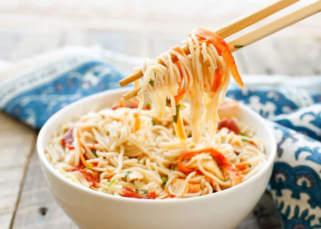 Cuocete al dente i tagliolini in abbondante acqua salata, scolateli bene e metteteli da parte. Affettate in diagonale le pannocchiette. Scaldate l’olio in un wok, aggiungete i peperoni, il sedano, la carota e i funghi rosolateli a fiamma alta per 5 minuti. Unite le pannocchiette e i tagliolini, abbassate la fiamma e proseguite la cottura per 2 minuti. Stemperate la fatina gialla nell’aceto balsamico, aggiungete il peperoncino, la passata di pomodoro, i dadi sbriciolati, l’olio e l’ananas non scolato e mescolato bene. Versate la miscela all’ananas e mescolate sulla fiamma moderata per 5 minuti, finchè la salsa inizierà a bollire e ad addensarsi. Cospargete i tagliolini con gli scalogni affettati e serviteli immediatamente a tavola.